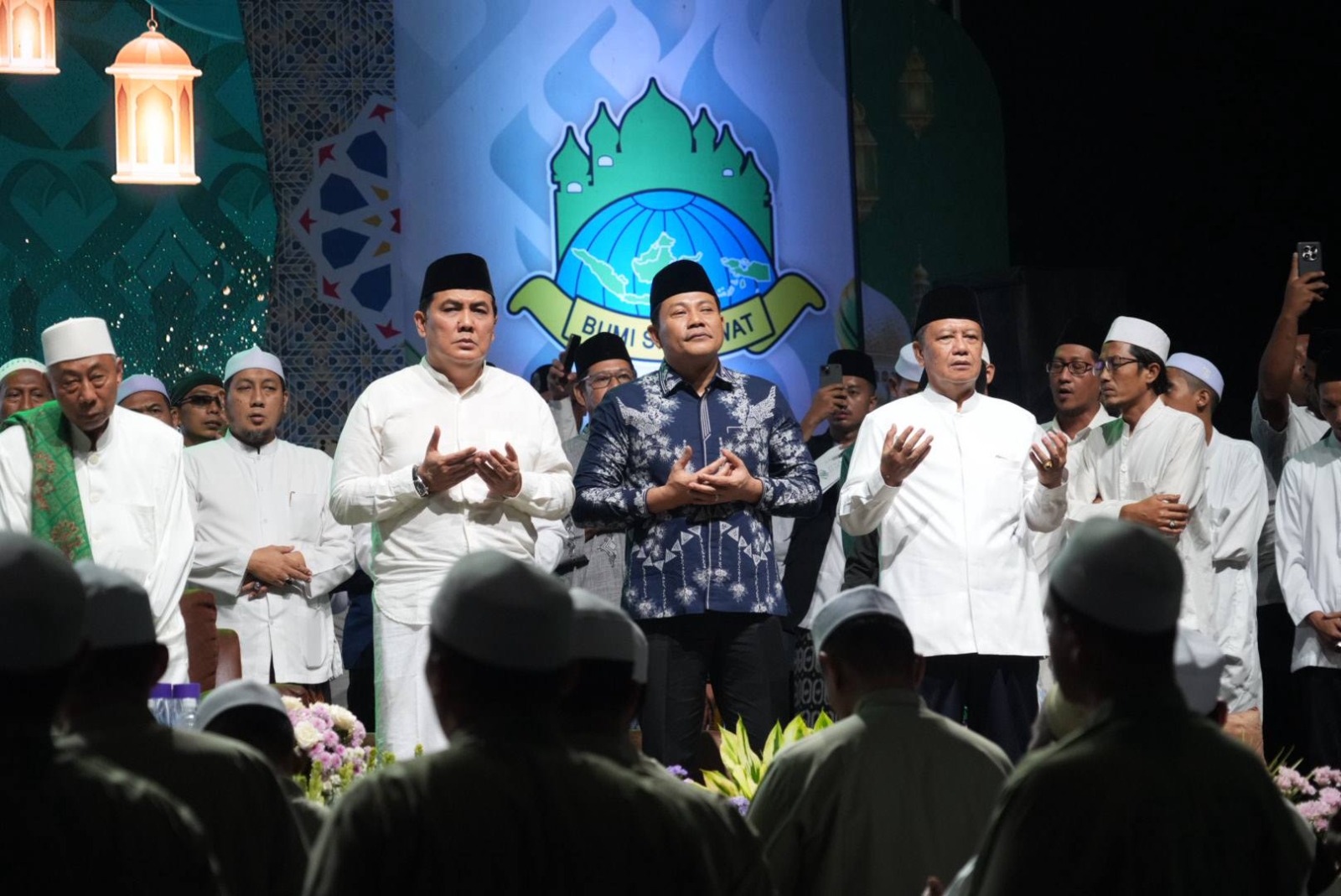 Suasana semakin religius dengan iringan sholawat dari Majelis Azzahir Pekalongan, yang memandu ribuan jemaah melantunkan doa bersama untuk keberkahan bangsa.