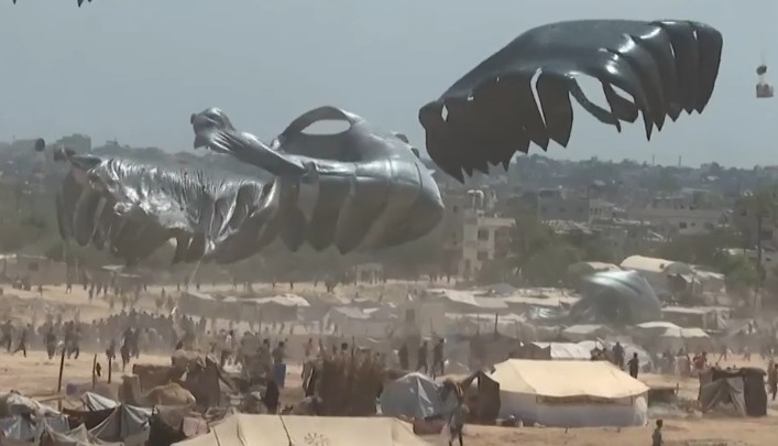Dalam salah satu insiden, rekaman menunjukkan warga Gaza di kawasan Zuweida berlarian menyambut paket bantuan yang dijatuhkan dari udara.
