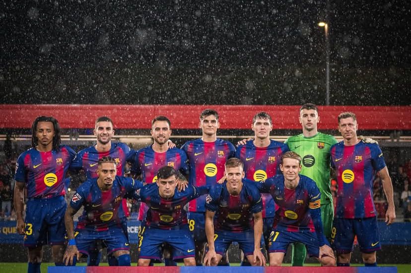 Joan Garcia; Jules Kounde, Eric Garcia, Andreas Christensen, Gerard Martin; Frenkie de Jong, Pedri; Raphinha, Dani Olmo, Ferran Torres; Robert Lewandowski.