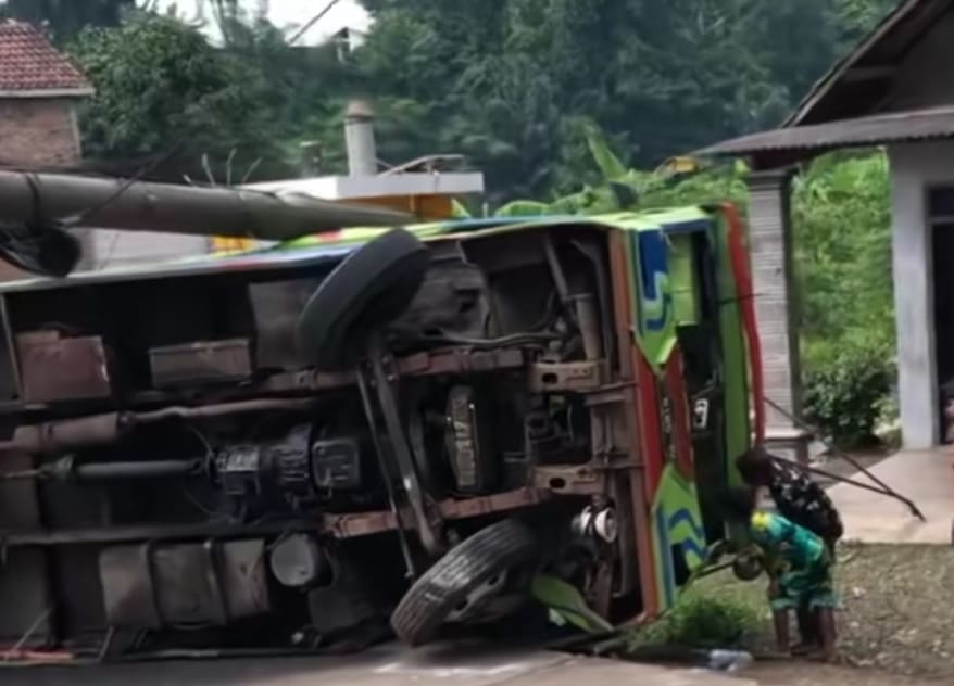Kendaraan diduga kelebihan muatan sehingga tidak kuat menanjak. Setelah gagal menanjak, bus meluncur mundur tanpa kendali, tergelincir, lalu menghantam tiang listrik sebelum akhirnya terguling.